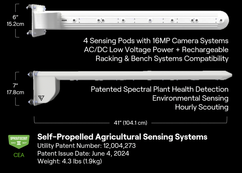 Sproutscout is an ultra-low-cost sensor system powered by advanced AI that collects and analyzes over 2.5 million data points daily. Sproutscout provides real-time insights into crop health and environmental conditions, enabling continuous 24/7 monitoring. It collects detailed data, including temperature, CO₂ levels, humidity, plant height, and more. This system, equipped with a robot that moves along a rail with a charging station and optional solar charge, captures daily imagery of each bench or row, enabling remote monitoring. It helps identify stress factors early and provides AI-driven harvest predictions, making advanced crop monitoring accessible and practical for growers.